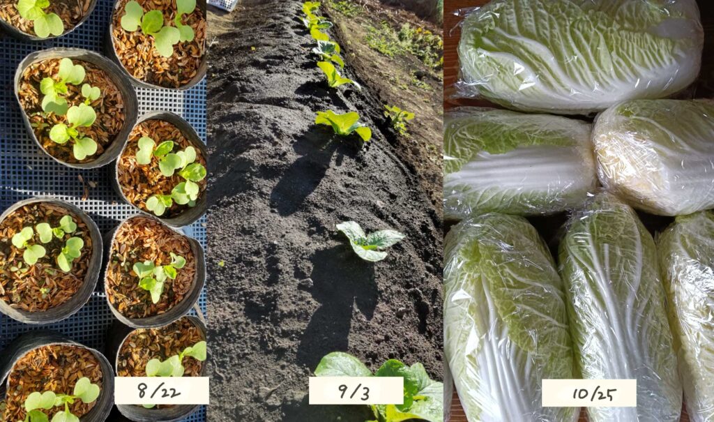 90日で育つという白菜を種子から育ててみました。植え付け後は直ちに防虫ネットをかけましたが、収穫前にはどういうわけか防虫ネットの中でとんでもない量のアブラムシが住んでいて、とてもしょんぼり収穫しました。外の葉を廃棄して食べられそうな部分だけにしてみたら、そこそこ美味しそうに見えて来たので大変ほっとしました。育成中に一度だけ草取りをしたのでそのせいなのかも知れないしそうじゃないかも知れませんが、AIが言うには虫にとってキャベツや白菜はご馳走なんだと言っていました。そんな出来事を引きずり、今年はどうしようか考え中です。