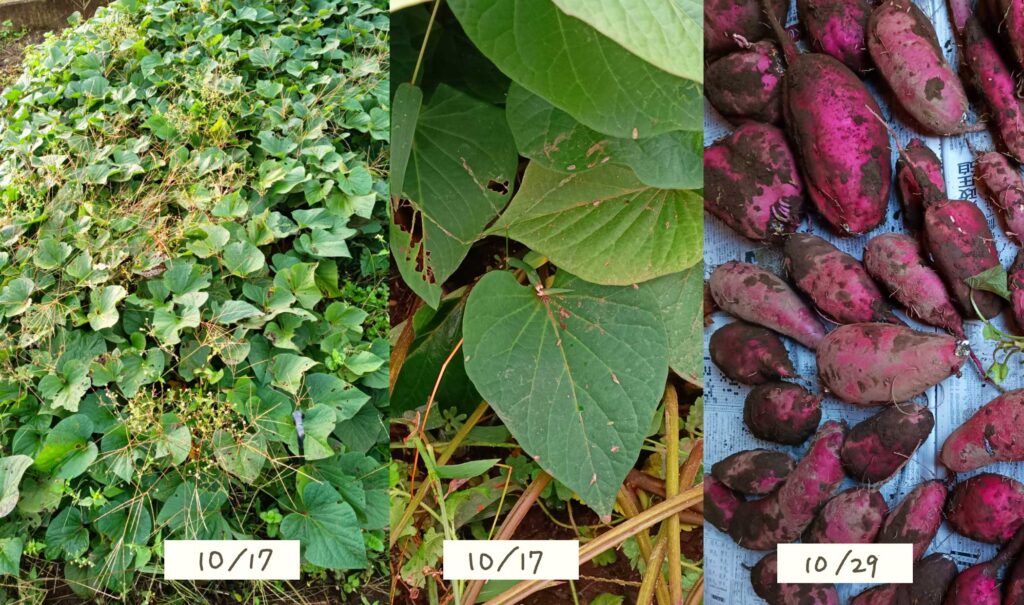 4月頃にスーパーで買ってきて畑の一角に埋めておいた紅はるかを6月に植えた記事まではアップしましたが、その後無事大きくなり、霜が来た頃に収穫しました。思いのほかちゃんと出来て嬉しかったです。スーパーの紅はるかもそのまま植えっぱなしにしていたら、その株が一番たくさん収穫できました!植え付けがとても暑い中だったので大変心配してしまったので、今年もやるならもっと早くに植え付けたいなと思いました。